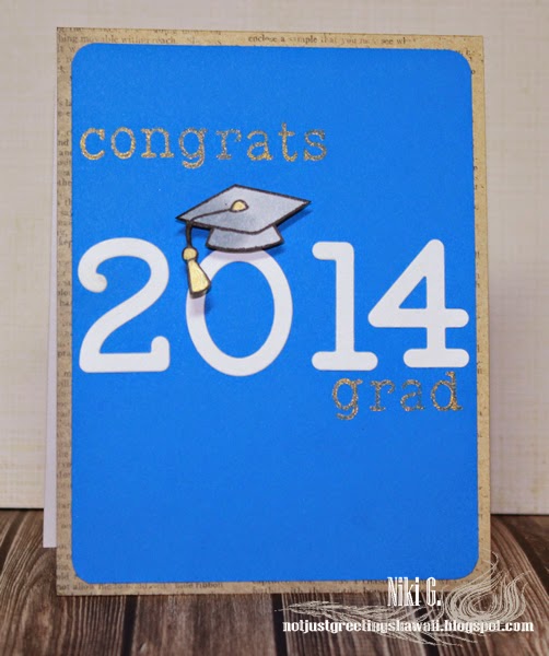 Graduation party season is in full effect here so I've got tons of cards to make. I needed to come up with a design that was easy to make multiples of and just change the colors of the background and the die cut numbers according to their school. I wished the Delicata ink showed up better in the pic.
